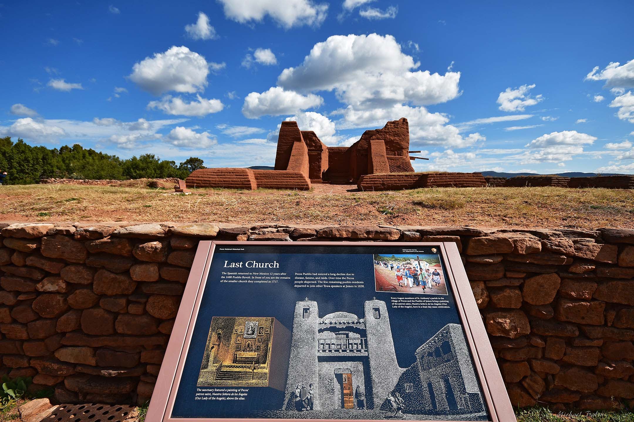 However, when the Spaniards returned in 1692, the Pecos community stayed on friendly terms with them. The church was restored back. The site was abandoned in 1838, after the Pecos population suffered from marauding Comanches. Only 180 people lived here in 1788. The surviving remnant of the Pecos population (all 17 of them) moved to the Jemez Pueblo in 1838.